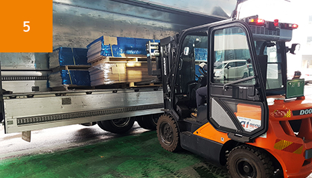 작업환경에 따라서 1TON/2.5TON/5TON 차량으로 운송작업 진행