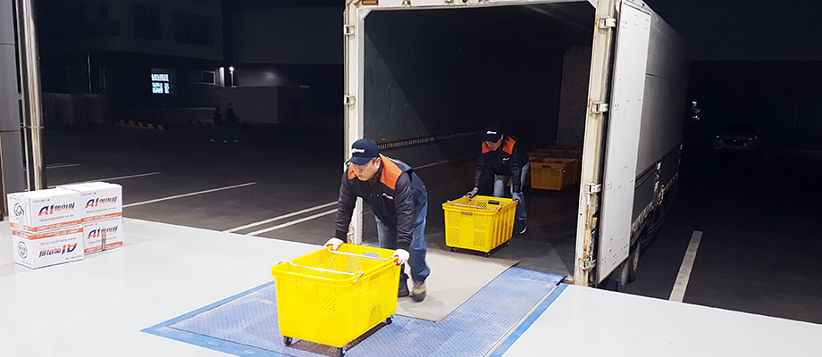 대물 하차작업(1인당 1개 혹은 2개 바구니 이동)